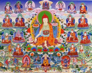 Parmi eux se trouvaient également deux femmes extraordinaires ayant atteint le parfait éveil : Nigouma et Soukkhasiddhi. Il est dit qu’elles avaient reçu des enseignements directement du Bouddha Vajradhara, le Bouddha primordial, essence de tous les bouddhas.